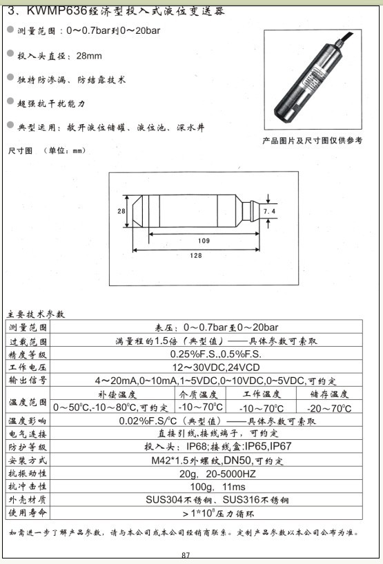 KWMP636经济型投入式液位变送器